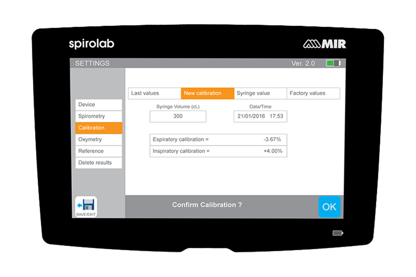 - Real-time testing and pediatric incentive are available on the device's display. Calibration can be performed directly from the device. It operates both in Stand-Alone mode and connected to a PC via USB cable.