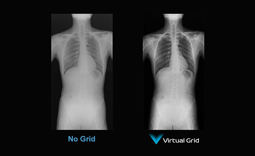 Virtual Grid™ intelligent image processing replaces the use of a grid to enhance contrast and improve clarity while reducing dose as much as 50% compared to exams performed with a grid. Allows lower dose without sacrificing image quality while helping prevent retakes associated with grid misalignment.