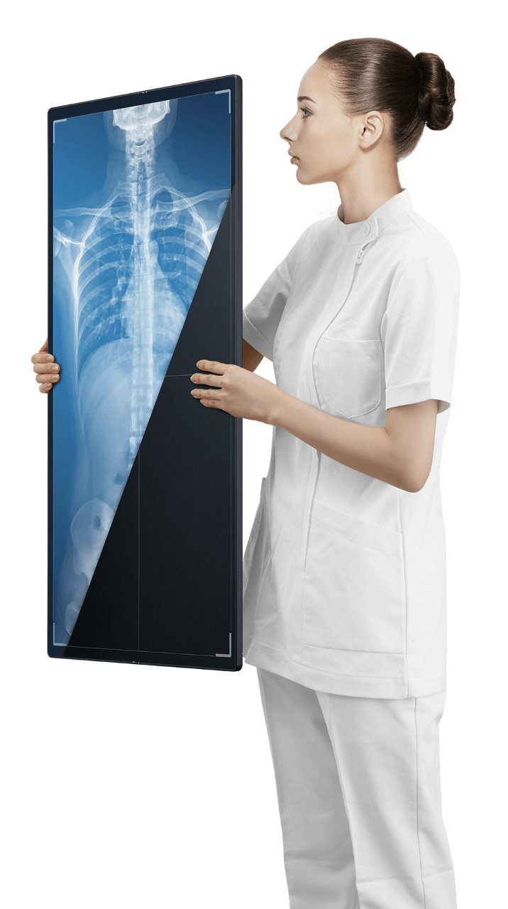 Fujifilm’s “SmartSwitch” technology enables automatic X-ray detection, eliminating the need for a wired connection to the X-ray generator. This allows image capture with any x-ray source on demand and simplifying use with other rooms or mobiles.