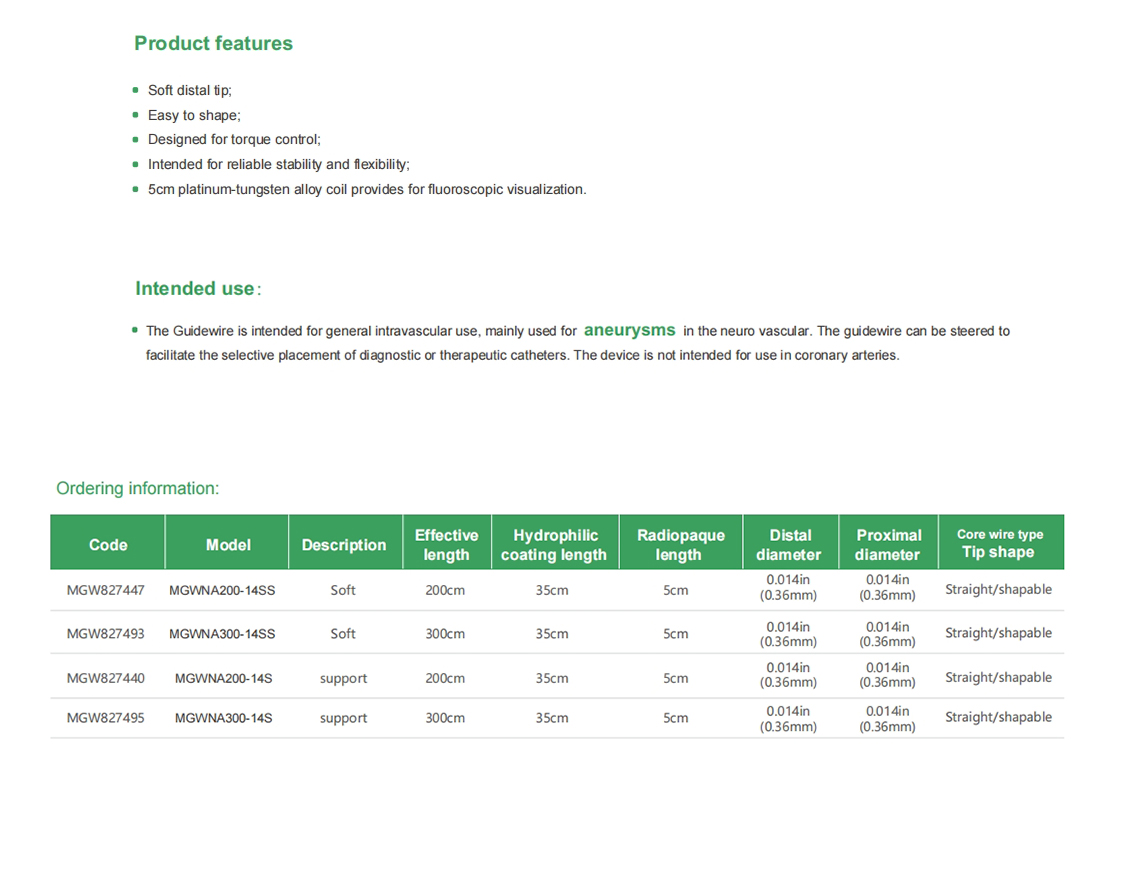 The guidewire is intended for general intravascular use, mainly used for aneurysms in the neurovascular system. The guidewire can be steered to facilitate the selective placement of diagnostic or therapeutic catheters. The device is not intended for use in coronary arteries