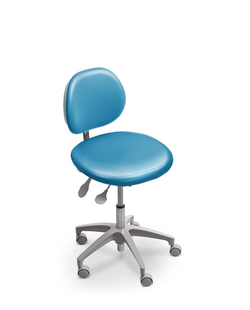 -Adjustable torso support (A-dec 400 Assistant’s stool). Easily locks in place and can be converted for left or right-handed operators.
