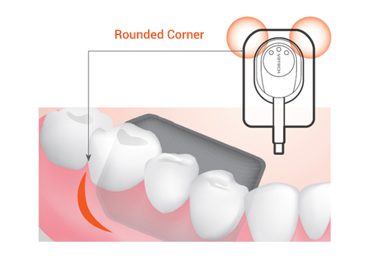 Patients feel pain because delicate oral mucosa gets pressure from a hard sensor corner. Rounded corner can reduce that pain. But it has a possibility of reducing active image area. This is the technology that sustains the perfect balance between them.