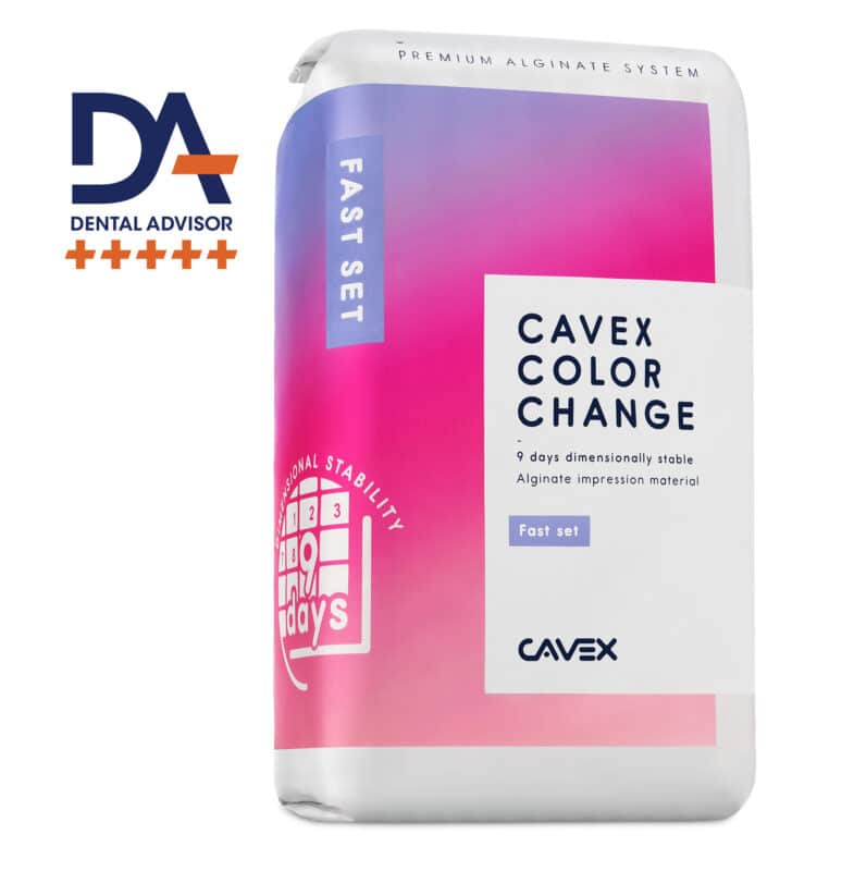 User-friendly impression material with virtual intelligence: Cavex ColorChange. This product belongs to the latest generation of Cavex alginates. Color changes indicate different procedural stages.
