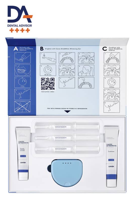 We value the opinion of the dentist. That is why we let The Dental Advisor test our Cavex Bite & White ABC Masterkit. After a clinical evaluation by a team of dentists, this complete whitening solution received a clinical rating of no less than 87%, which corresponds to 4 (out of max. 5) pluses. Professionals rate the ABC Masterkit as an effective solution that is easy to use.