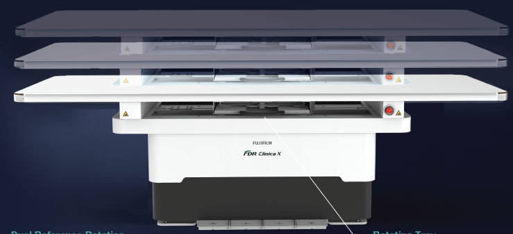 FDR Clinica X is compatible with Fujifilm FDR D-EVO III, II and FDR ES flat panel detectors. FDR D-EVO III detectors feature revolutionary glass free design, making them even more lightweight and durable than previous generations. Multiple panel sizes allow technologists to match just right sizes for every exam and easily share detectors on demand throughout the department, including to and from other rooms and portables.