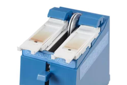 Using the HemaPrep®, blood smears with consistently high quality can also be produced by less experienced technicians in a reproducible manner. Both the length and thickness of the blood smear can be adjusted by changing the speed of the smear preparation step.