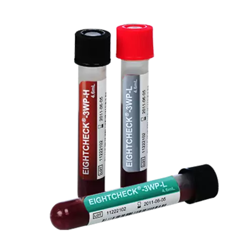 The control material can be used for a period of 12 weeks. It should be stored at 2–8 °C before and after opening. Each Eightcheck vial contains 4.6 mL (large vial) or 1.5 mL (small vial).