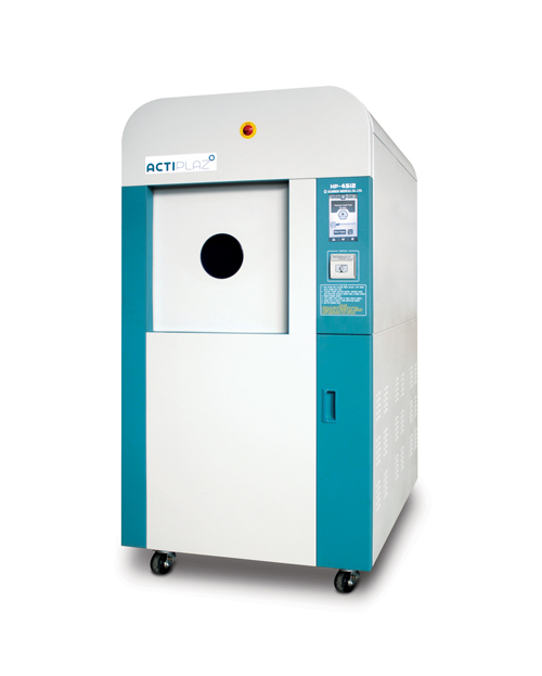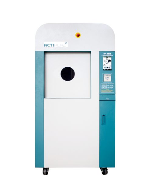 - HANSHIN ACTIPLAZⓇ HP-4512 low temperature hydrogen peroxide sterilizer is designed to see the plasma formed in the chamber at first hand during sterilization process through the monitoring window, and this will give a confidence to operators for the plasma sterilization.
