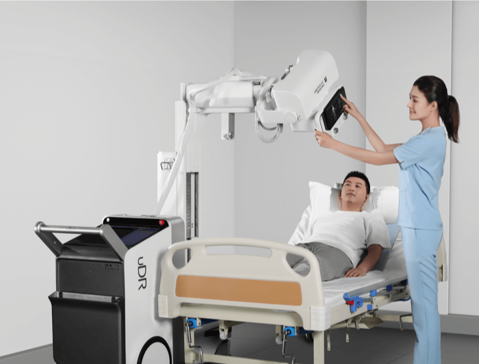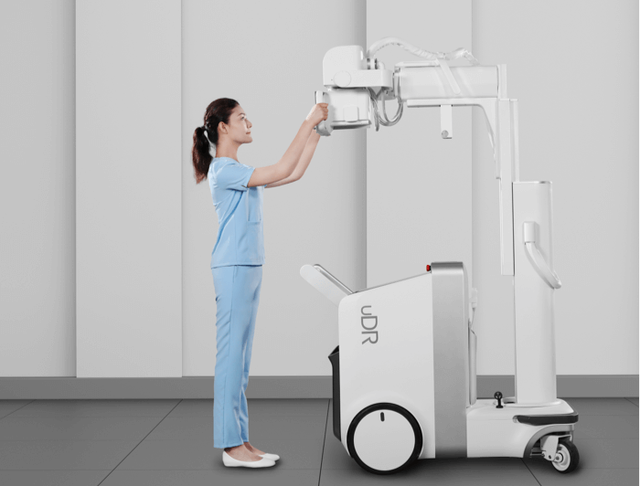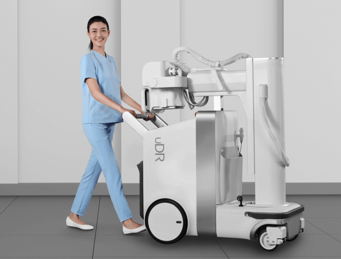 The uDR 380i Pro is a high-performing and agile mobile X-ray system with an ultra-narrow body design, a high voltage generator, and the uVision Remote Console that redefines the workflow for point of care imaging.