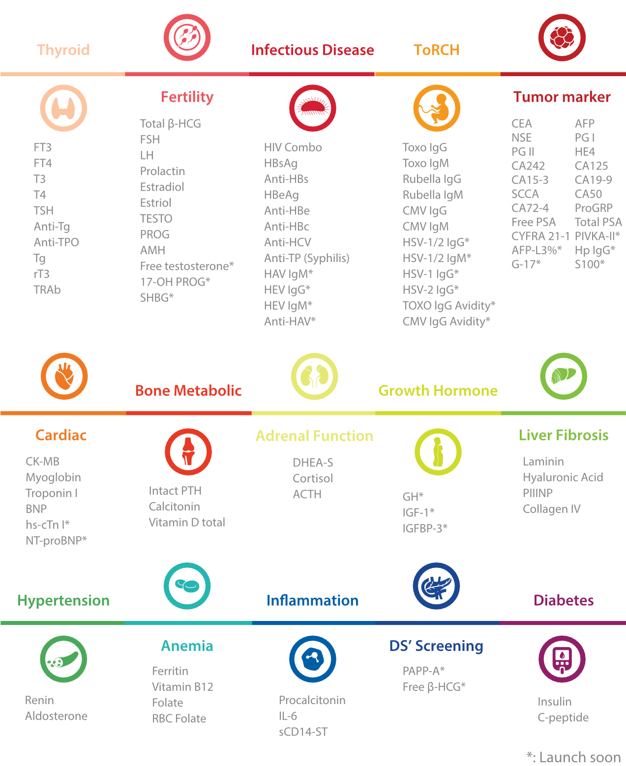 A floor-standing, fully automatic, chemiluminescence immunoassay system offering up to 240 tests per hour with ALP-AMPPD principle.