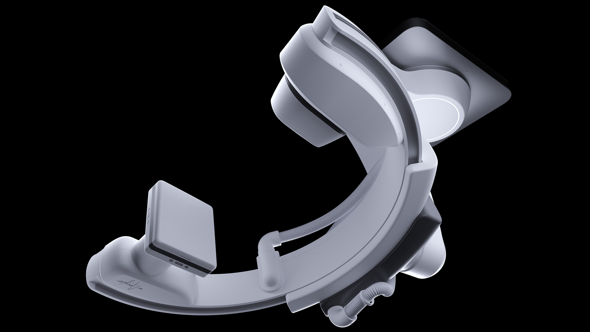 The 8-axis ceiling-mounted robotic system offers exceptional flexibility, allowing it to navigate freely through the complex environment of the interventional suite. This allows for full coverage of the lab space and enables easy tableside accessibility.