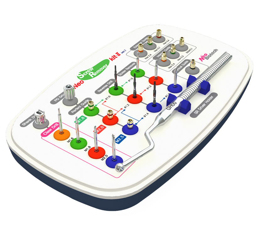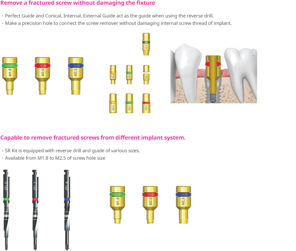 SR Kit is equipped with reverse drill and guide of various sizes.