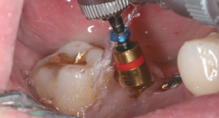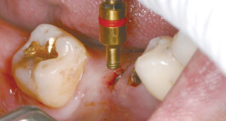 Make a precision hole to connect the screw remover without damaging internal screw thread of implant.