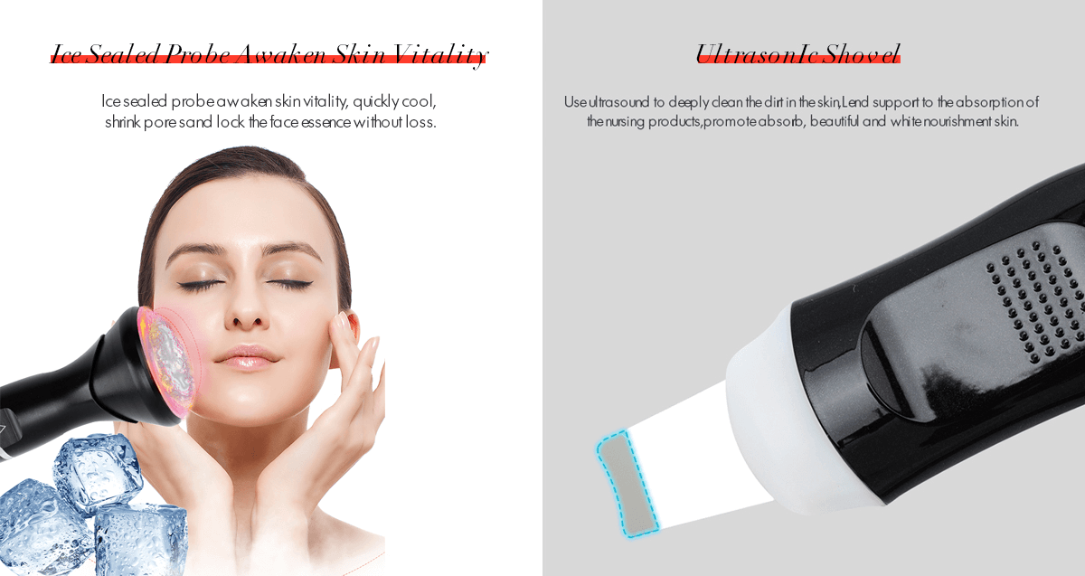 Ice sealed probe awaken skin vitality, quickly cool, shrink pore sand lock the face essence without loss.