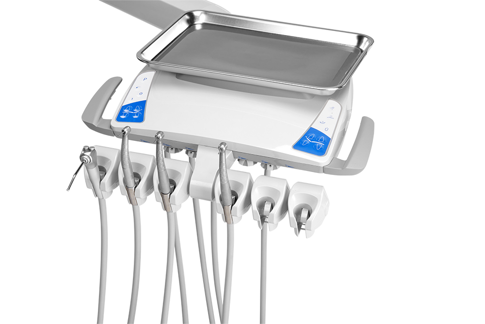 -Movable instrument tray can be swapped to left and right side without any tool, more suitable for left-hand and right-hand dentists to share the equipment.