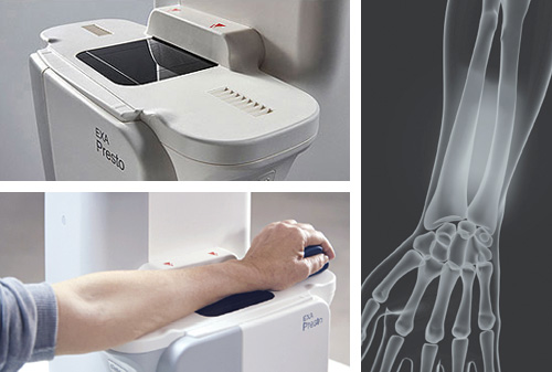 EXA-PRESTO is the cutting-edge peripheral Double X-ray Absorptiometry (pDXA) device with the low level of radiation. It is specially designed for an easy and swift diagnosis of osteoporosis with the better accessibility and comfort. Its unique and sophisticated feature represents the emotion of female patients.