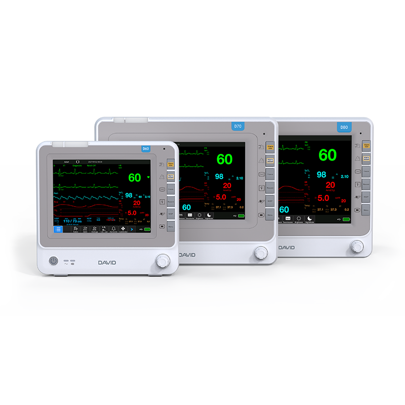 Professional ECG algorithm, suitable for monitoring the 3-lead (optional configuration) and 5-lead (standard configuration) ECG waveform and heart rate.