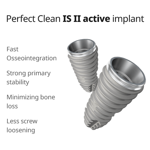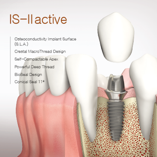 Based on the accumulated clinical cases and studies over 10 years, IS-II active has been continuously developed for the improvement. IS-II active has an internal submerged type design with S.L.A. surface that allows faster and stronger osseointegration.