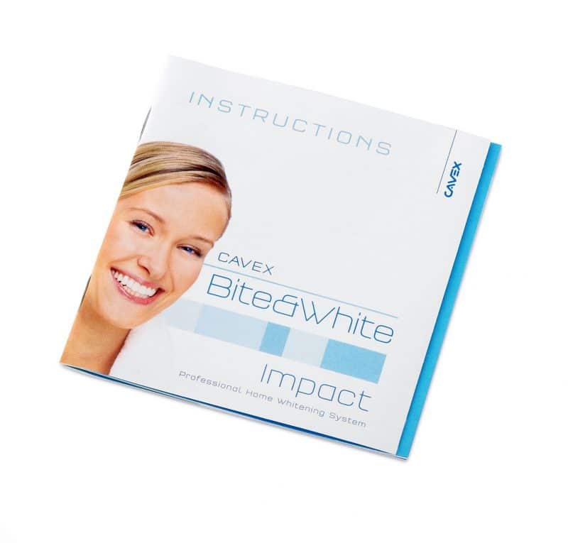 The revolutionary Cavex Bite&White Impact Kit is a complete do-it-yourself teeth whitening set for use at home. No need for syringes, as the whitening gel is applied using a tube. With the gel being stable at room temperature, the Cavex Bite&White Impact Kit is a one-of-a-kind at-home whitening set.