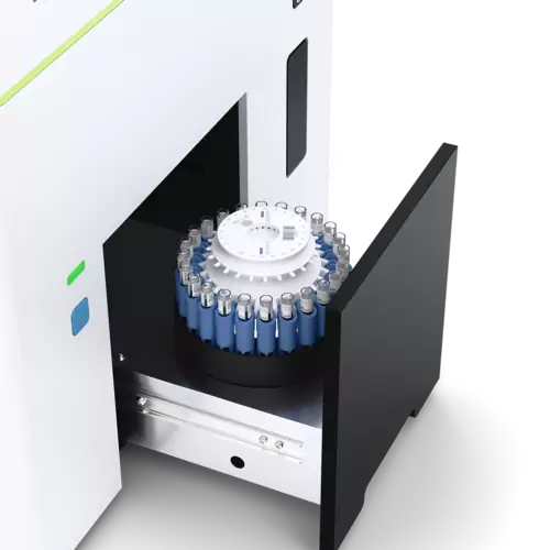 Sample tube handling is flexible: you can use either a single tube in manual mode, or an automated mode. In automated mode, samples are loaded on a 12- or 24-tube rotor, providing walk-away acquisition of up to 24 samples. For urgent samples that require expedited analysis, a STAT function allows the user to interrupt the ongoing acquisition of samples.