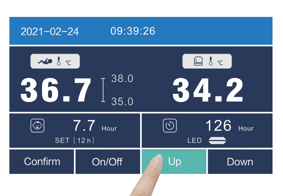 2) Manually control the upper and nether LED light sources separately to adjust the ambient temperature;
