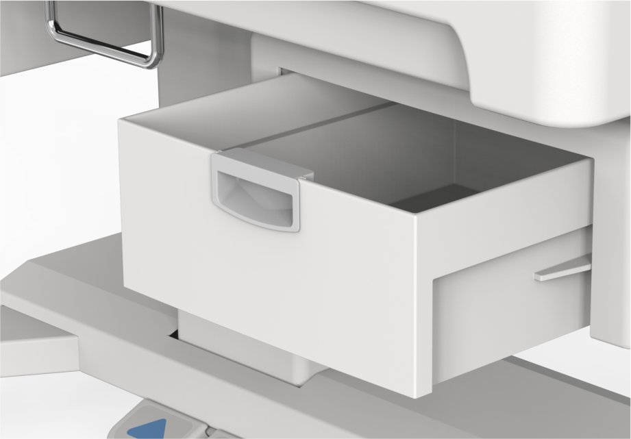 The two-way pull-out storage drawer can accommodate a variety of small medical devices.