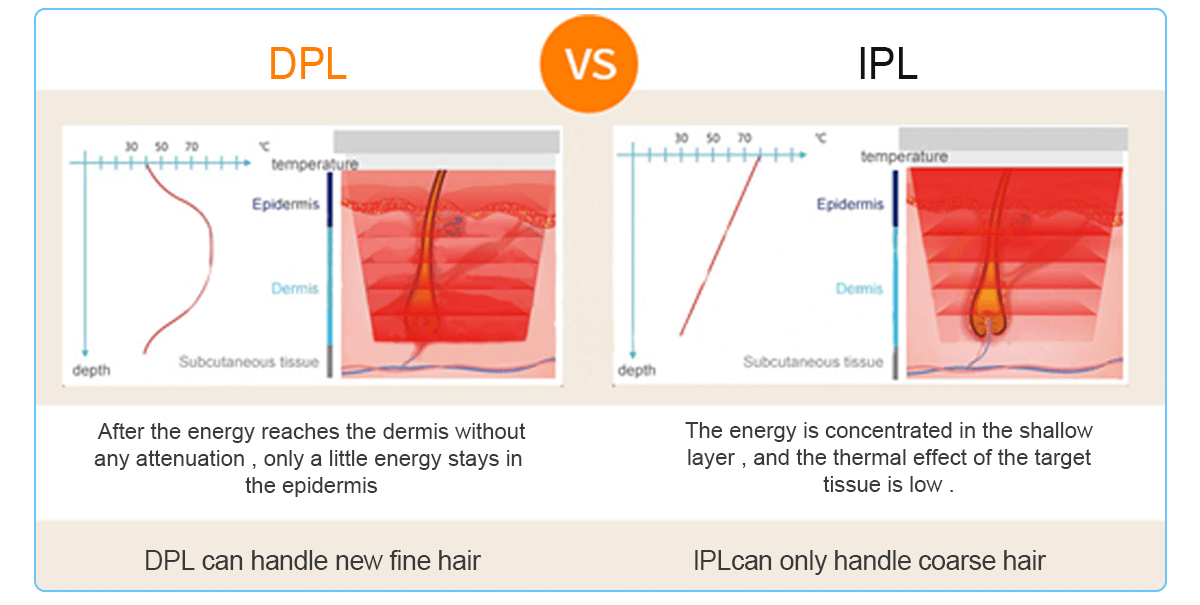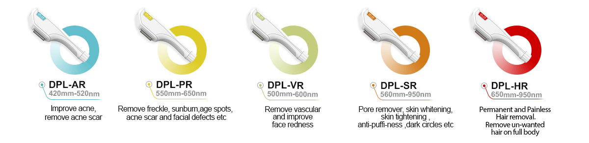 The machine uses DPL(Dye Pulsed Light) precision skin rejuvenation technology that is narrow-spectrum photo skin rejuvenation (DPL), it refers to a new optical skin rejuvenation technology, different from traditional technology (such as IPL), The new technology can stimulate 100nm narrow-spectrum pulsed light which also contains the absorption peaks of melanin and oxygen and hemoglobin, allowing accurate concentration of effective therapeutic energy, thus quickly and efficiently solve the facial freckles and telangiectasia (red face) problems.