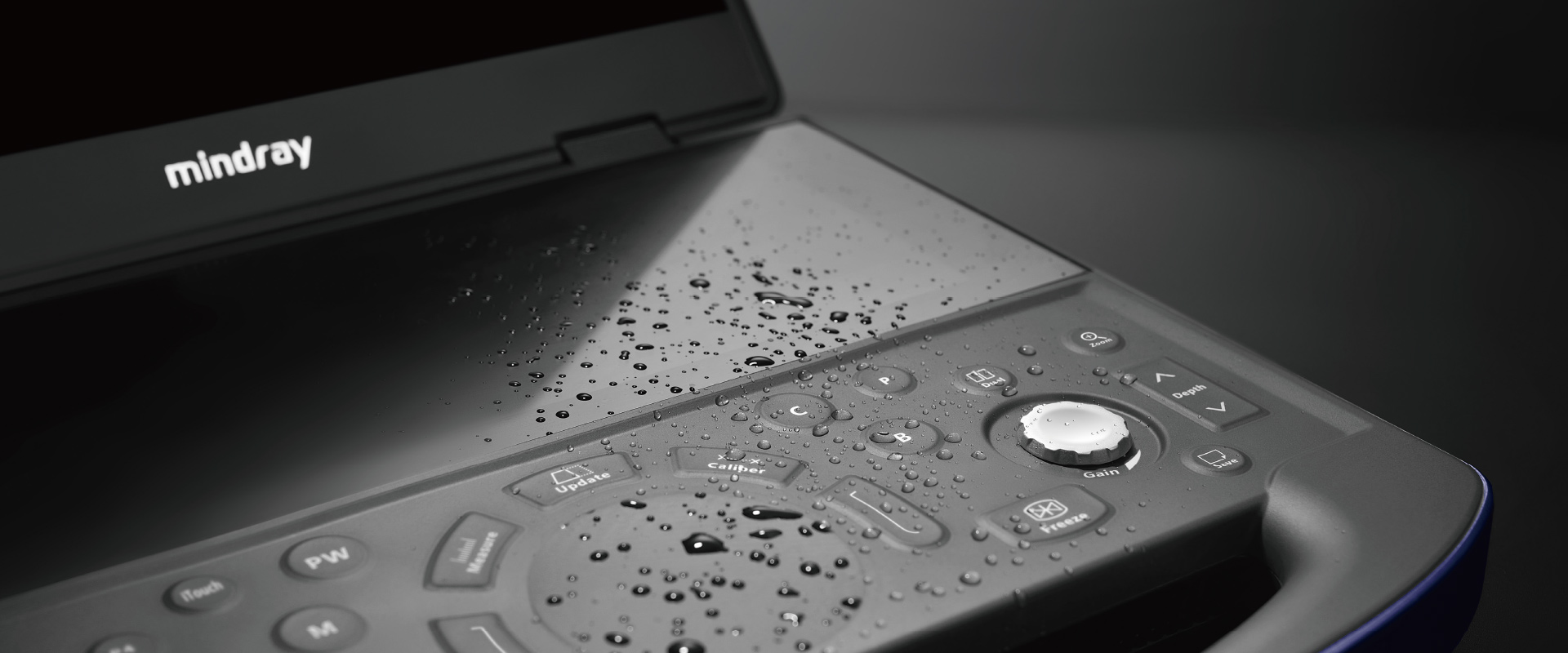 3) Specialized transducer holder Enables the easy application of sterile cover