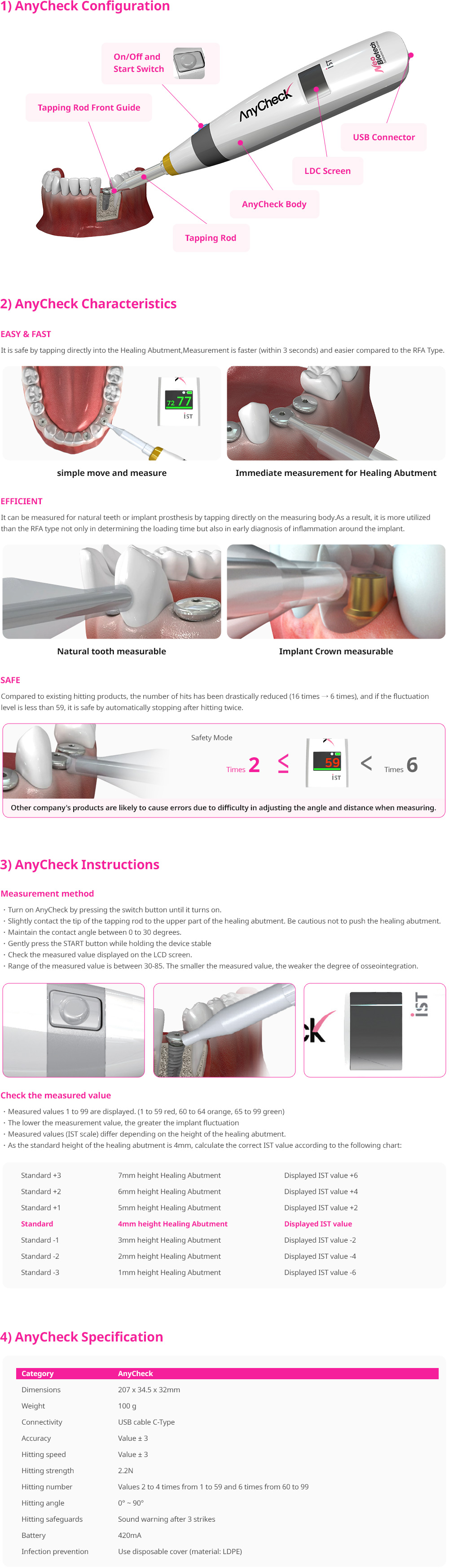 It is safe by tapping directly into the Healing Abutment, Measurement is faster (within 3 seconds) and easier compared to the RFA Type.