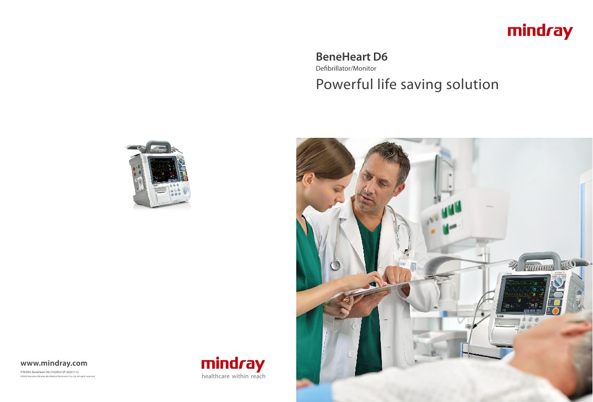 BeneHeart D6, a professional biphasic defibrillator-monitor, meets the requirements of medical professionals in hospitals and clinics worldwide. The compact, durable, and ergonomic design of D6 makes it suitable for emergency use. Proven technologies ensure a robust unit, ready to be used in different environments. With different operation modes (manual defibrillation, AED, pacer, and monitoring mode) you are in control of any situation.