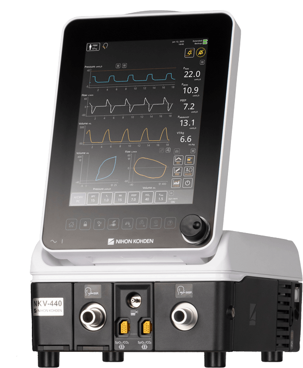 The NKV-440 is a turbine-driven high-end ventilator for intensive care ventilation of neonates, children, and adults.