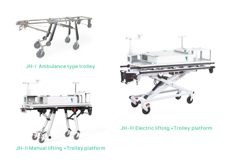 2) Optional ambulance type trolley is available for safe and efficient loading and unloading operations.