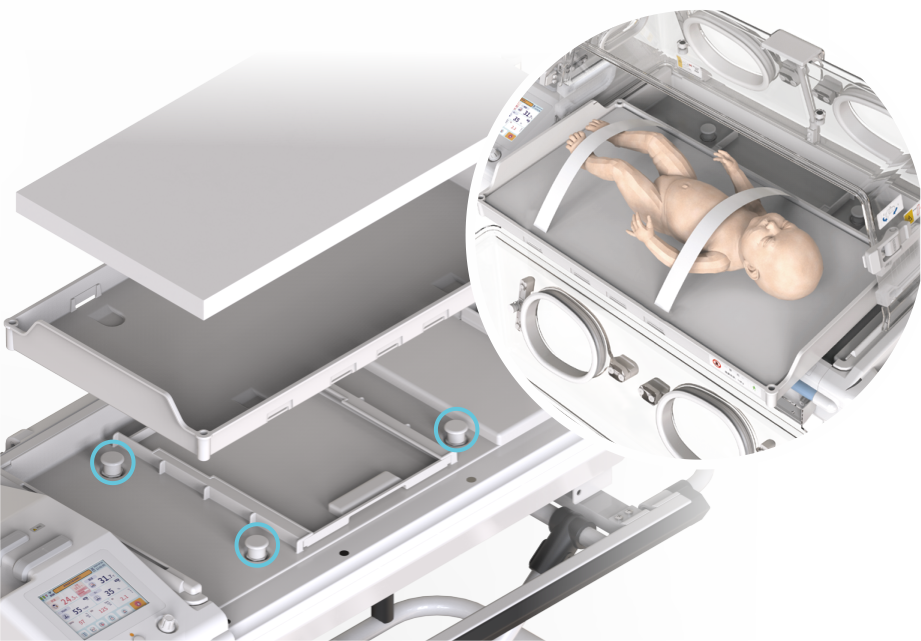 1) Standard trolley with stepless adjustment of height is convenient for medical staff to carry out in-hospital nursing, diagnosis, and transfer of critically ill newborns timely.