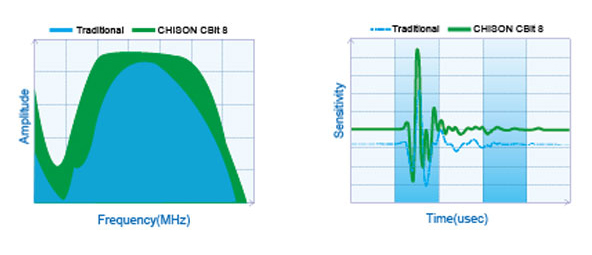 CHISON CBit 8 uses the latest advance transducer technology, which has wider bandwidth, higher sensitivity and better signal-noise ratio, providing superb anatomic details to users, delivering excellent resolution and penetration, especially during difficult-patient scanning.