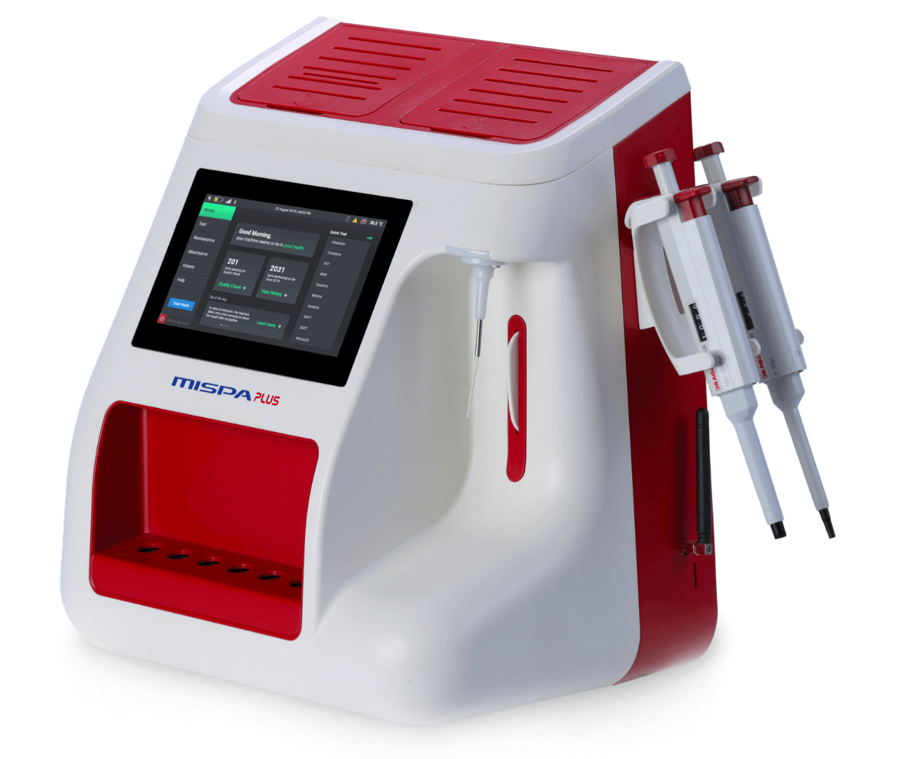 -Mispa Plus is a technically superior, compact, simple, reliable, and advanced semi-automated biochemistry analyzer. It comes with a 7-inch TFT colorful display with a capacitive touch screen, whereas another analyzer comes with a graphical LCD display with a membrane panel.