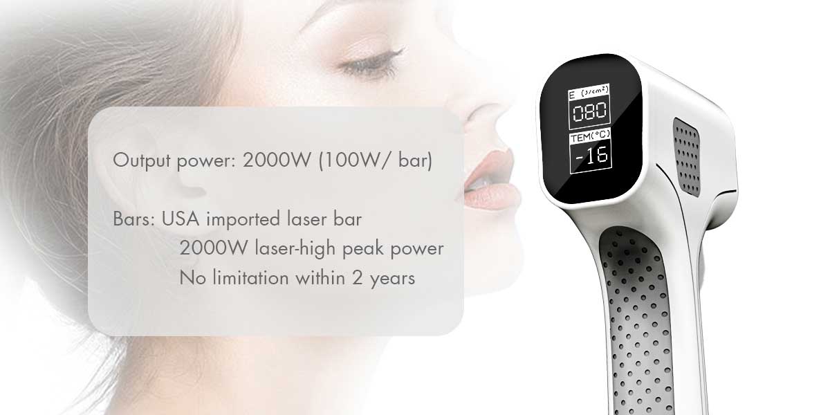 1. USA Imported coherent laser bar is more stable. And 2000W high power output laser energy can achieve the best hair removal.