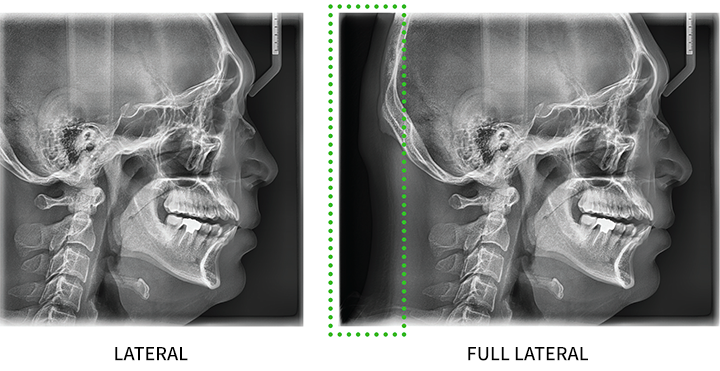 Scan type cephalometric offers two image sizes, LAT and FULL LAT, you can choose one of them based on the purposes of your diagnostic needs.