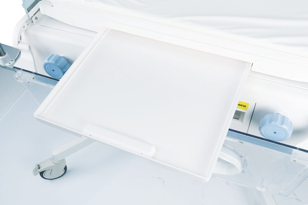 • Integrated Monitoring: Includes an in-built X-ray tray and weighing scale, minimizing the need to move the infant. Additionally, a CCD camera enables remote monitoring, and Masimo SpO₂ technology is available for comprehensive monitoring.