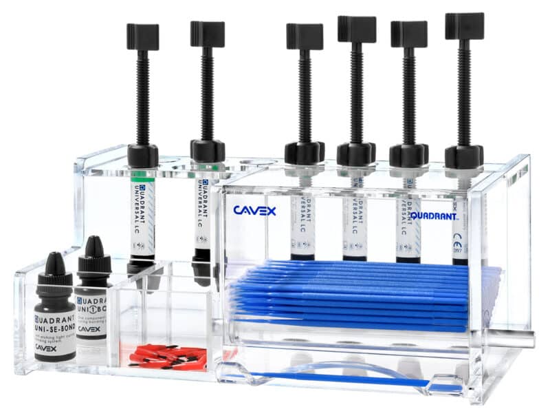 The Q-Systemisers are convenient and hygienic organizing systems for composite capsules and syringes. The idea for this unique design originated from the Dutch dentist and prominent opinion leader Hein de Kloet.