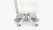 Sturdy smooth double castors provide a stable position of the examination table and give flexibility in the location of use. One castor is fitted with a steering lock which allows maneuvering around corners and furniture. To make optimum use of given set-up area, Easy Care can be used from 3 diggerent sides. From all these sides drawers can easily be opened and shelves or isntrument rails can be reached. For even more flexibility the examination table is available with soft-lift height adjustment.