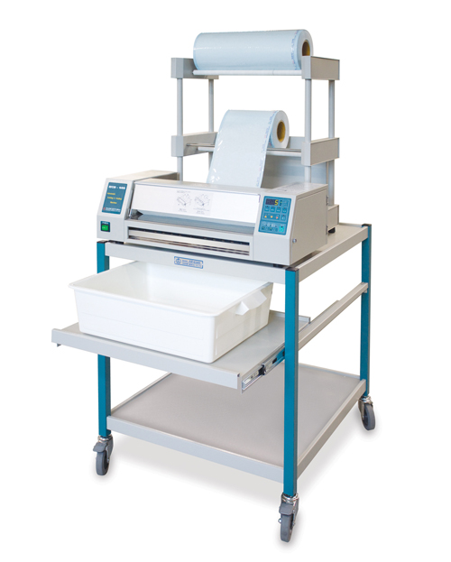 Roll stand and appliance table with drawers for gathering the sterilizing bags during sealing can be supplied as the optional product.