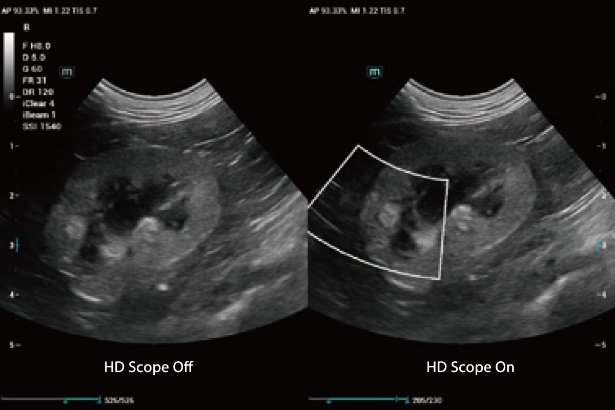 By processing channel data collected by the next-generation platform, HD Scope can improve the detail information and image contrast on specific area.