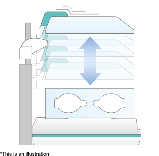 The X-Ray cassette can be drawn out from either side of the incubator without opening the admittance panel.