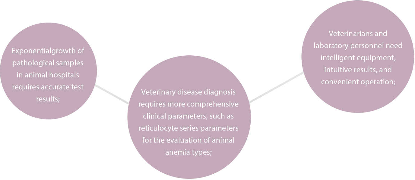 According to the characteristics of veterinary hematology analysis, Mindray Animal Medical insists on taking technological innovation as the basis, taking customer needs as the goal, and taking the clinical characteristics of animals as guidance. Now, we have developed hematology analyzer products that are suitable for animals, and we have become a pioneer in the field of a new generation of hematology analyzers.