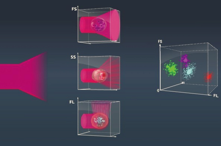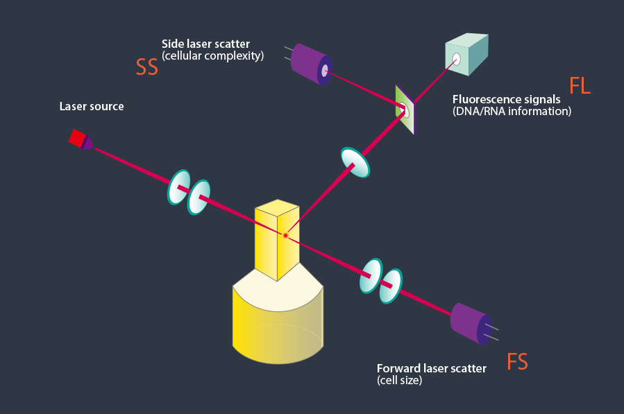 -S-Scatter: forward laser scatter and side laser scatter to detect the size and complexity of cells