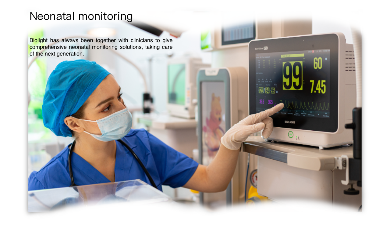 - Biolight has always been together with clinicians to give comprehensive neonatal monitoring solutions, taking care of the next genération.