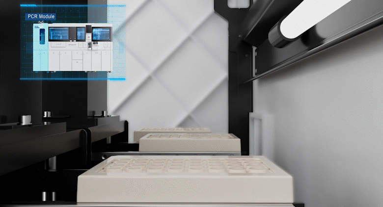 With a small footprint, Molecision R8 is a highly integrated system that can complete whole PCR testing process in one analyzer. Similar to a PCR laboratory, the internal structure of Molecision R8 is divided into three modules, including Reagent preparation module, Nucleic acid extraction module and PCR module.