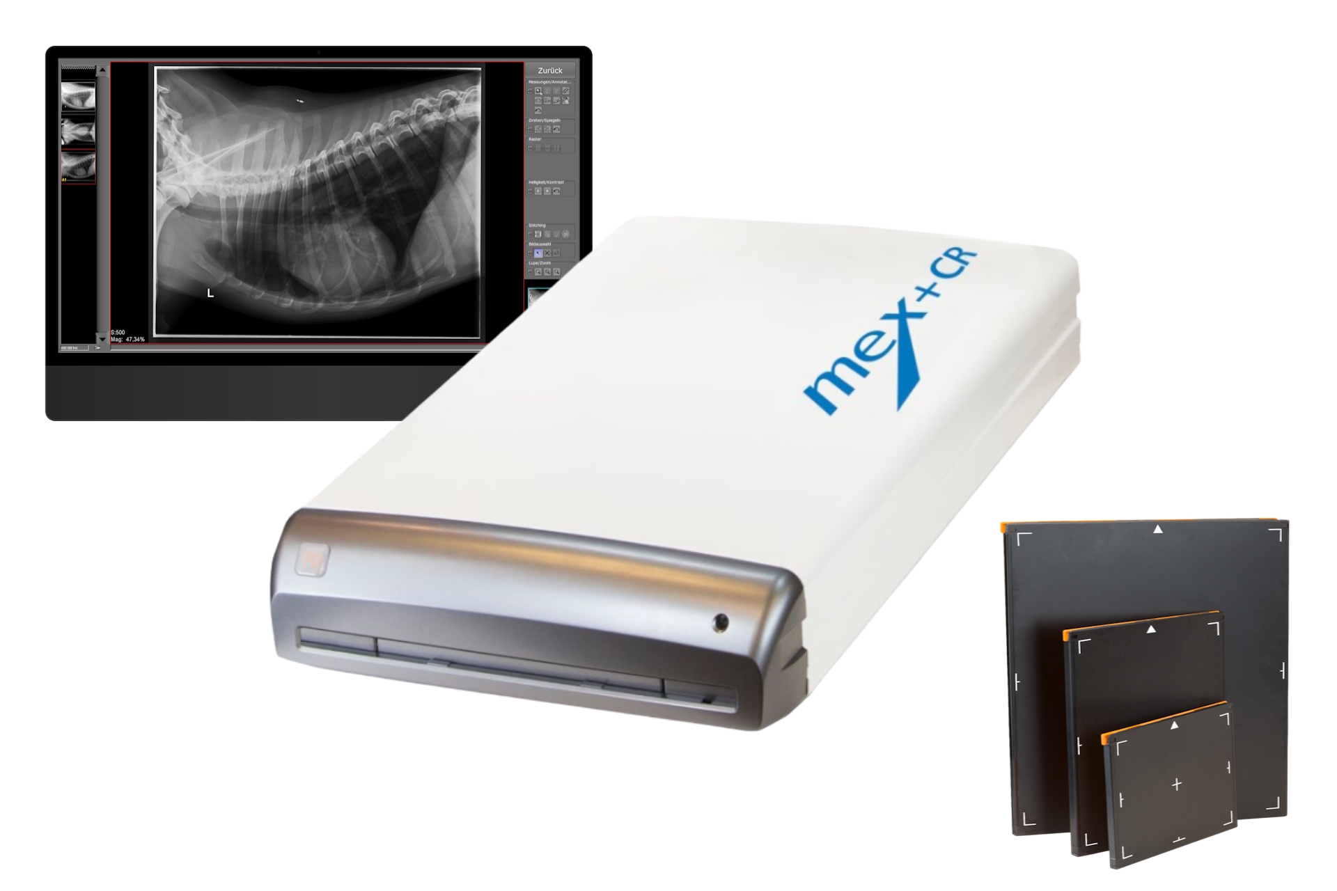 -Perfect for small X-ray rooms. The meX+CR can accommodate different cassette sizes -depending on the imaging method.