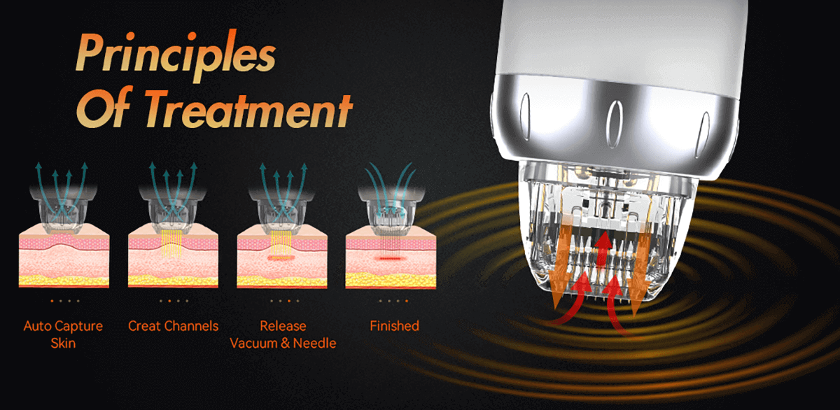 Micro needle rf machine add vacuum on the original basis of radio frequency. The vacuum absorbs the skin, and then the needling release energy, it can avoid the uneven energy of the needle intrusion into the skin due to skin elasticity. The treatment effect is better than ordinary radio frequency.