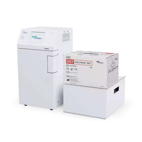 We provide two reagent package sizes (10 L and 20 L) of the Cellpack DST concentrate, suited to different daily sample processing volumes. The open stability is 60 days.